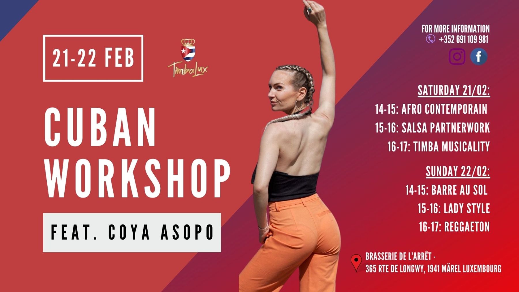 Barre au Sol, Afro Contemporain, Timba Musicality, Lady Styling, Salsa Partnerwork and Reggaeton.